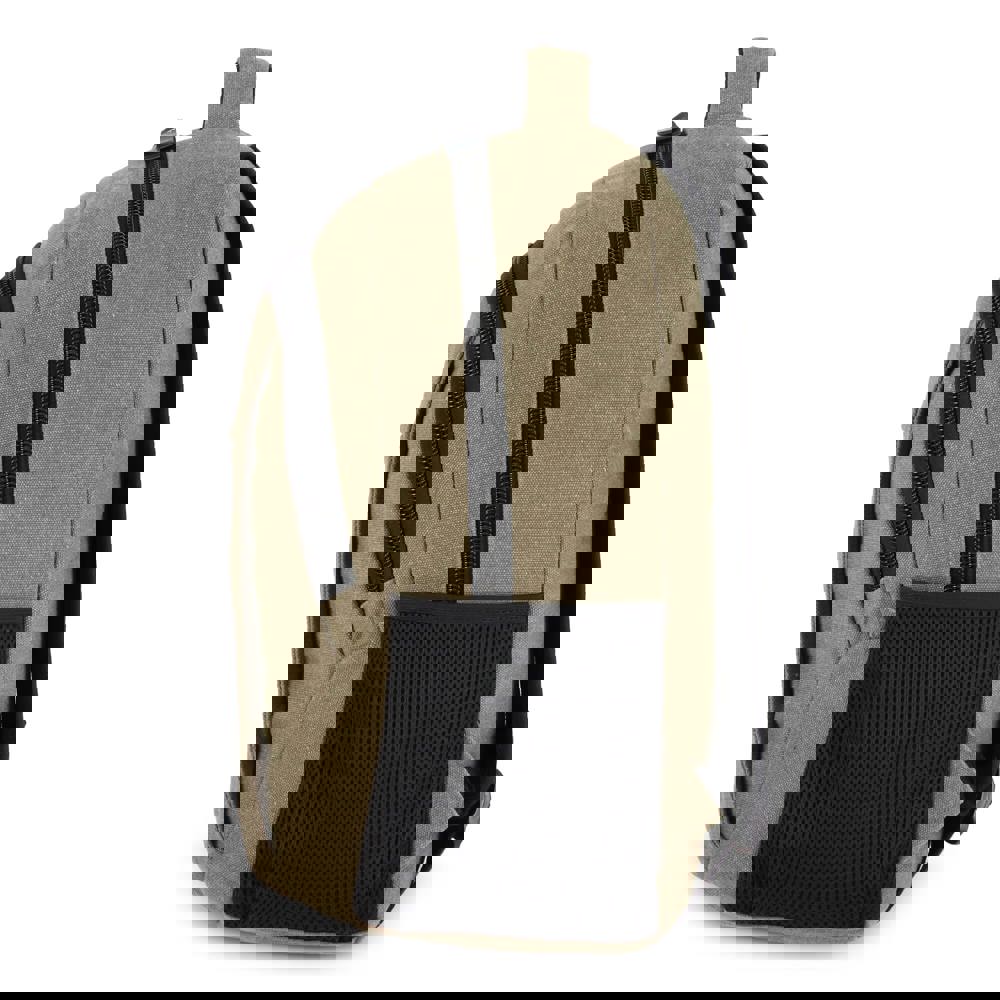 Dieser Rucksack ist aus recyceltem Baumwoll-Canvas gefertigt. Er besitzt 100 % recycelte Reflexionsstreifen. Die Reißverschlüsse und Zipper sind luxuriös. Das Futter besteht aus 100 % recyceltem Polyester. Der Rücken ist gepolstert. Ein Tragegriff gehört zur Ausstattung. Die Schultergurte sind verstellbar. Du findest zwei Seitenfächer für Flaschen oder einen Regenschirm. Ein Vorderfach ist vorhanden. Innen gibt es ein Laptopfach. Den Rucksack gibt es in Dunkelblau, Dunkelgrau und Olivgrün.