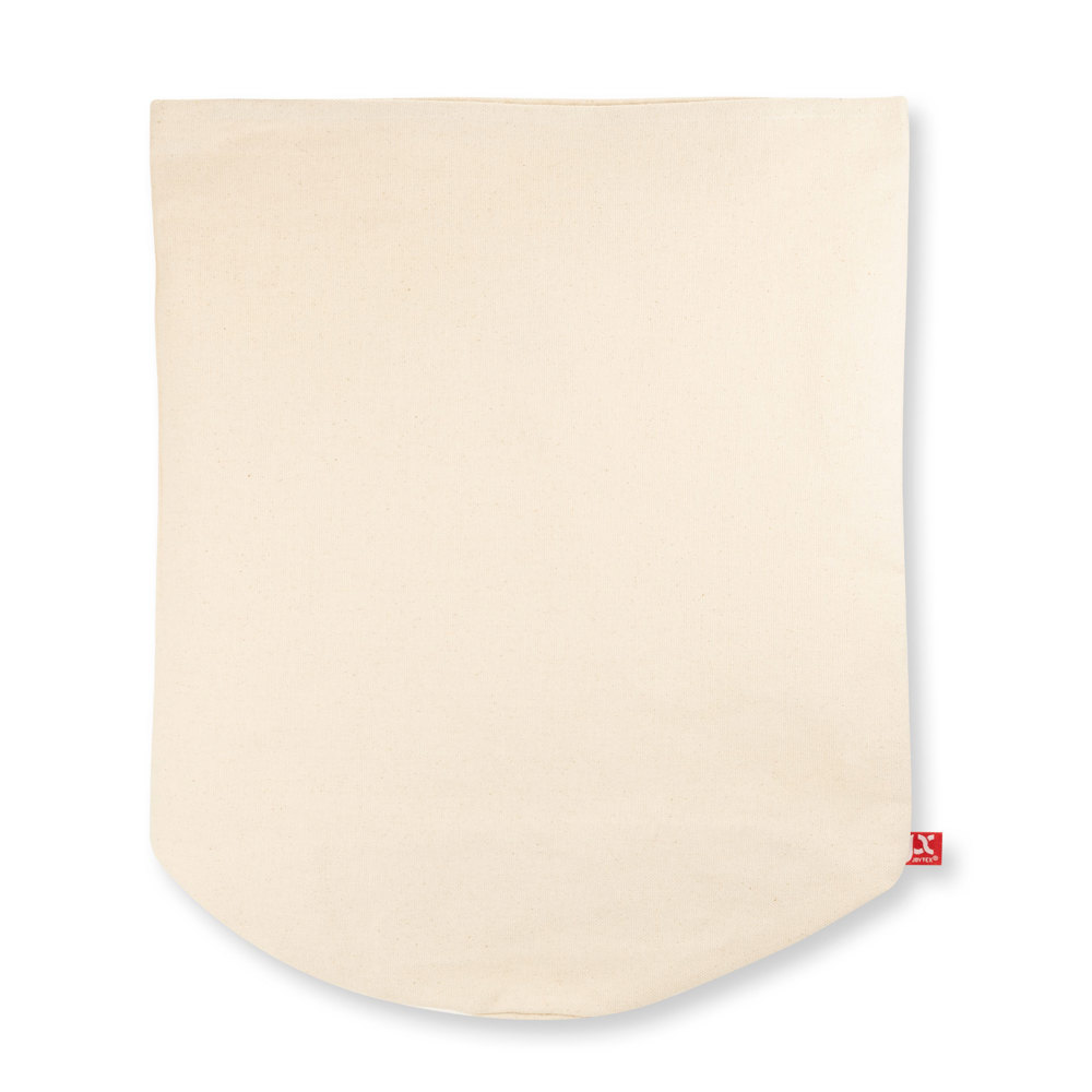 The bag is made from 100% OEKO-TEX® certified cotton. It boasts a strong 330 g/m² canvas material. A high-quality finish ensures the bag's durability. The bag is available in a natural color. Its cord strap closure provides secure containment of contents. This product is designed for repeated, long-term use, supporting environmental sustainability.