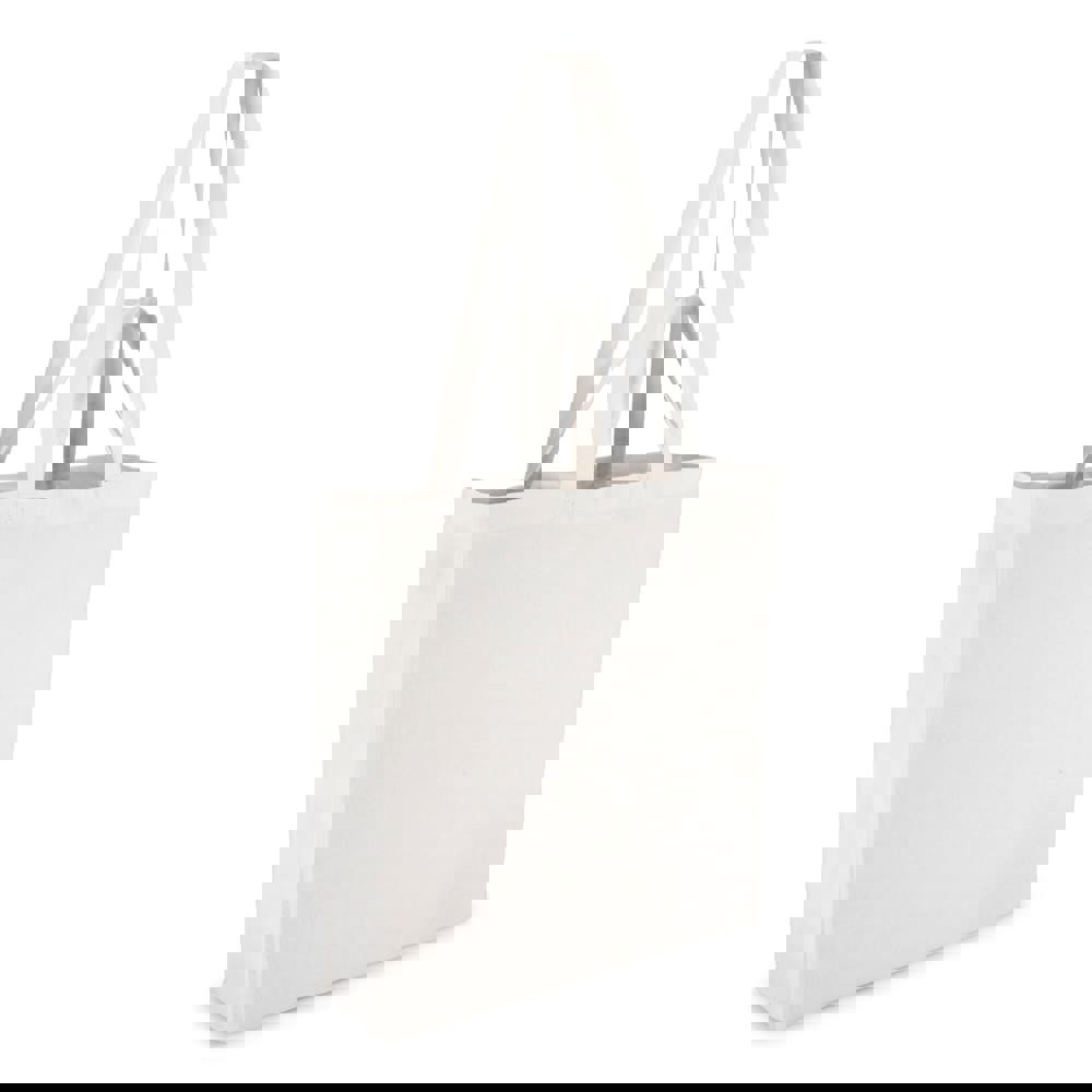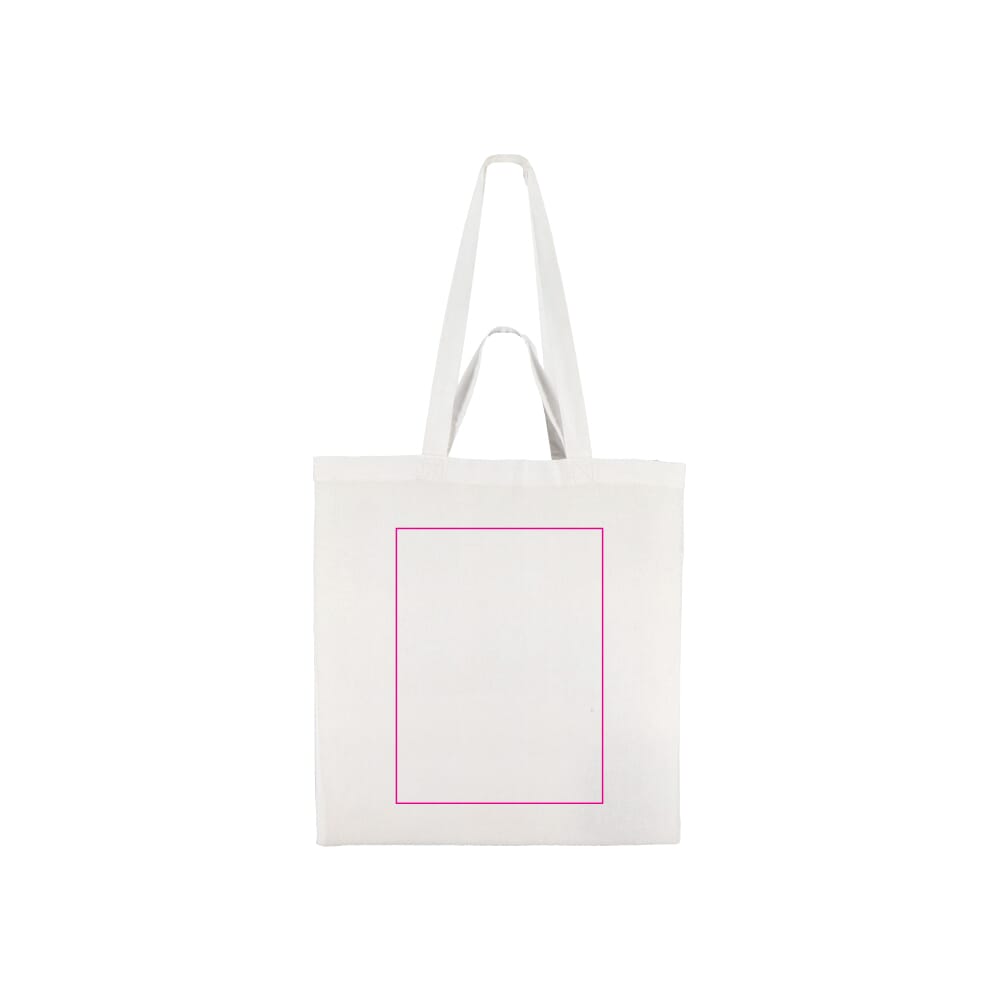 This tote bag is made from durable 140g/m² cotton. It features a spacious main compartment. Its dimensions are 38cm wide, 10cm deep, and 42cm high. It offers both long and short handles. This provides flexible carrying options. The OEKO-TEX® certification confirms its ecological safety.