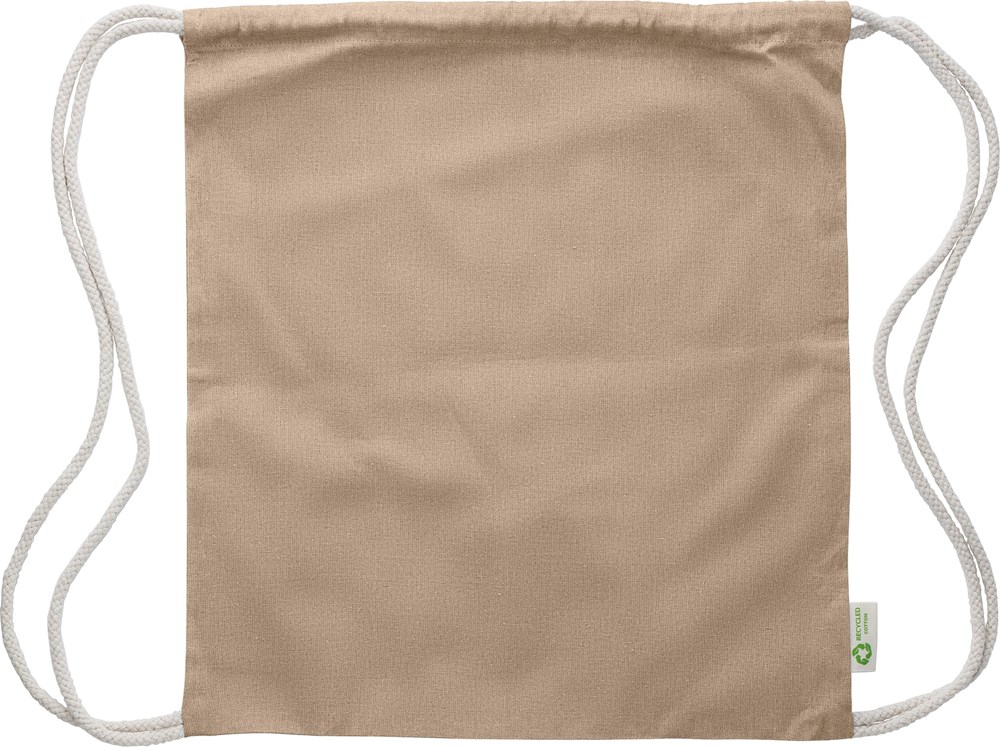 De trekkoordtas is vervaardigd uit stevig 100% gerecycled katoen. Dit materiaal is duurzaam. De tas is voorzien van robuuste trekkoorden. De hoeken van de tas zijn extra verstevigd. Dit garandeert een lange levensduur. De trekkoordtas valt onder de BIO-categorie.