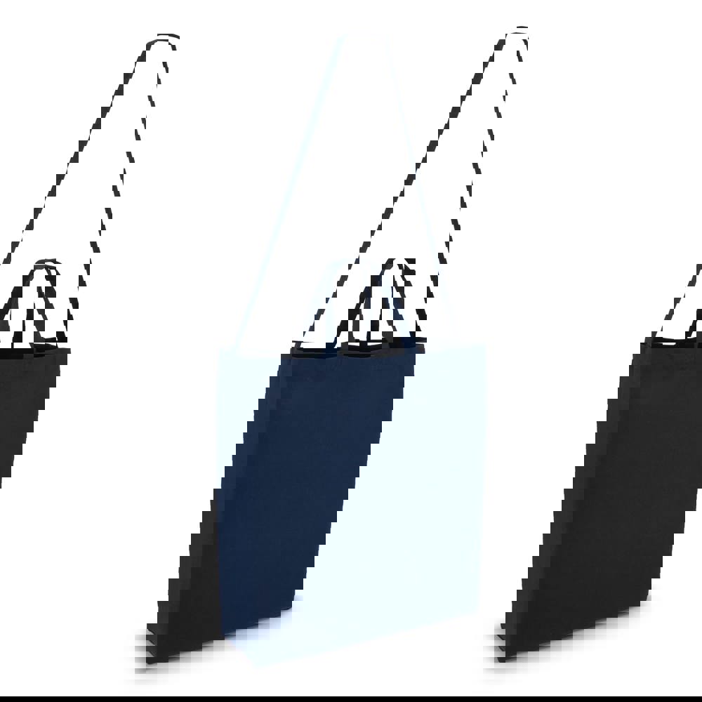 De Katoen Tote is gemaakt van 220 g/m² katoen. De tas heeft een afmeting van 40 cm breed, 13 cm diep en 44 cm hoog. Je hebt de keuze uit de kleuren zwart, wit en donkerblauw. De tas is OEKO-TEX® gecertificeerd. Dit garandeert dat de materialen veilig zijn. De tas heeft een lange schouderriem. Er zijn ook twee korte handvatten.