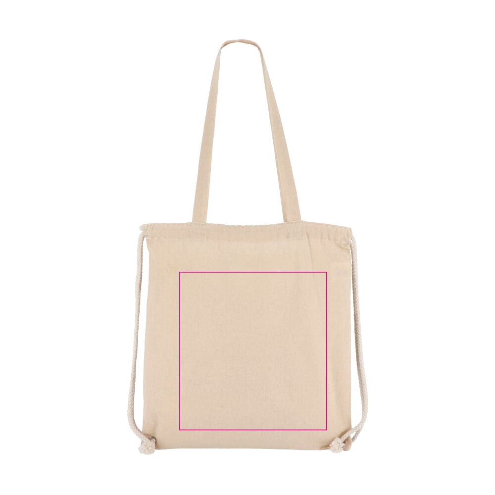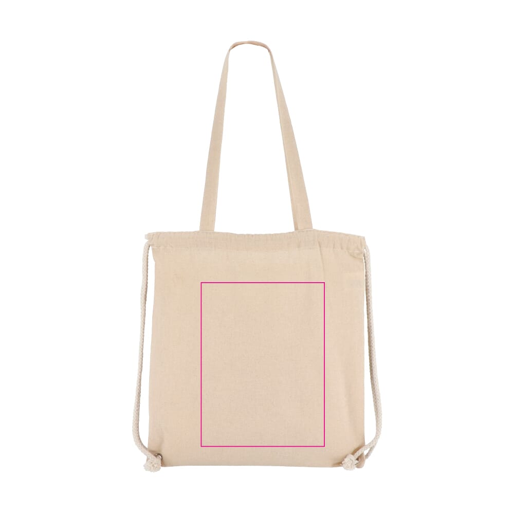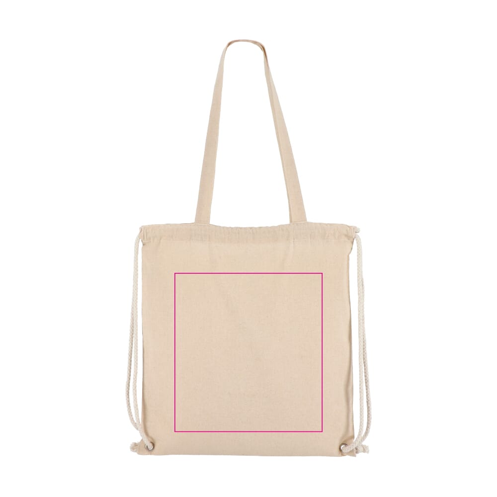 Deze katoenen rugzak tote is gemaakt van 140g/m² katoen. De afmetingen zijn 38 x 42 cm. De tas is voorzien van lange handvatten. Een extra trekkoordsluiting zorgt voor veelzijdigheid. Je draagt hem als gewone tote bag. Je sluit hem ook als rugzak. De tas is OEKO-TEX® gecertificeerd. Dit staat voor duurzame productie. De standaard kleur is ecru.